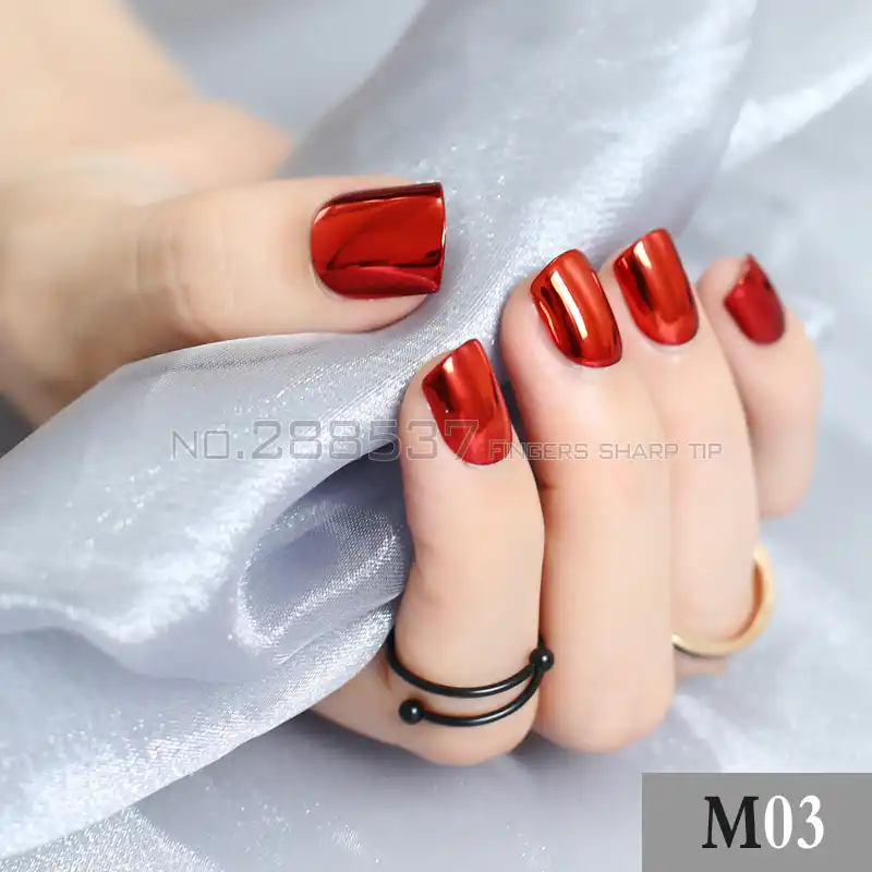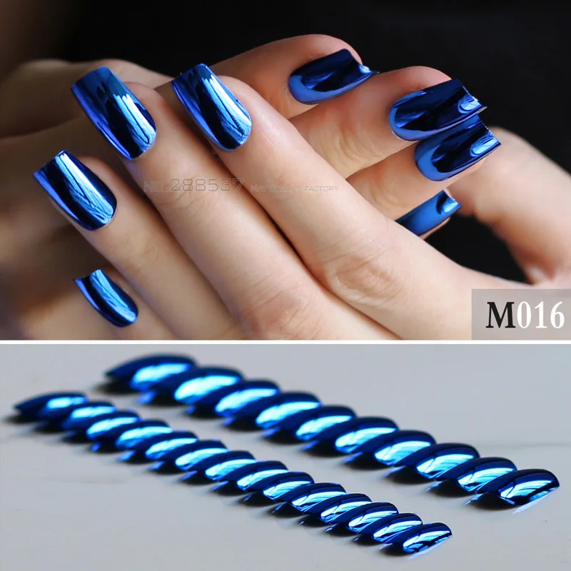 24 Stucke Blau Kurze Metall Gefalschte Nagel Silber Punk Einfarbig Rosa Lange Metall Rot Falsche Nagel Voller Nagel Helle Seite Spiegel Goldene Falsche Nagel Aliexpress