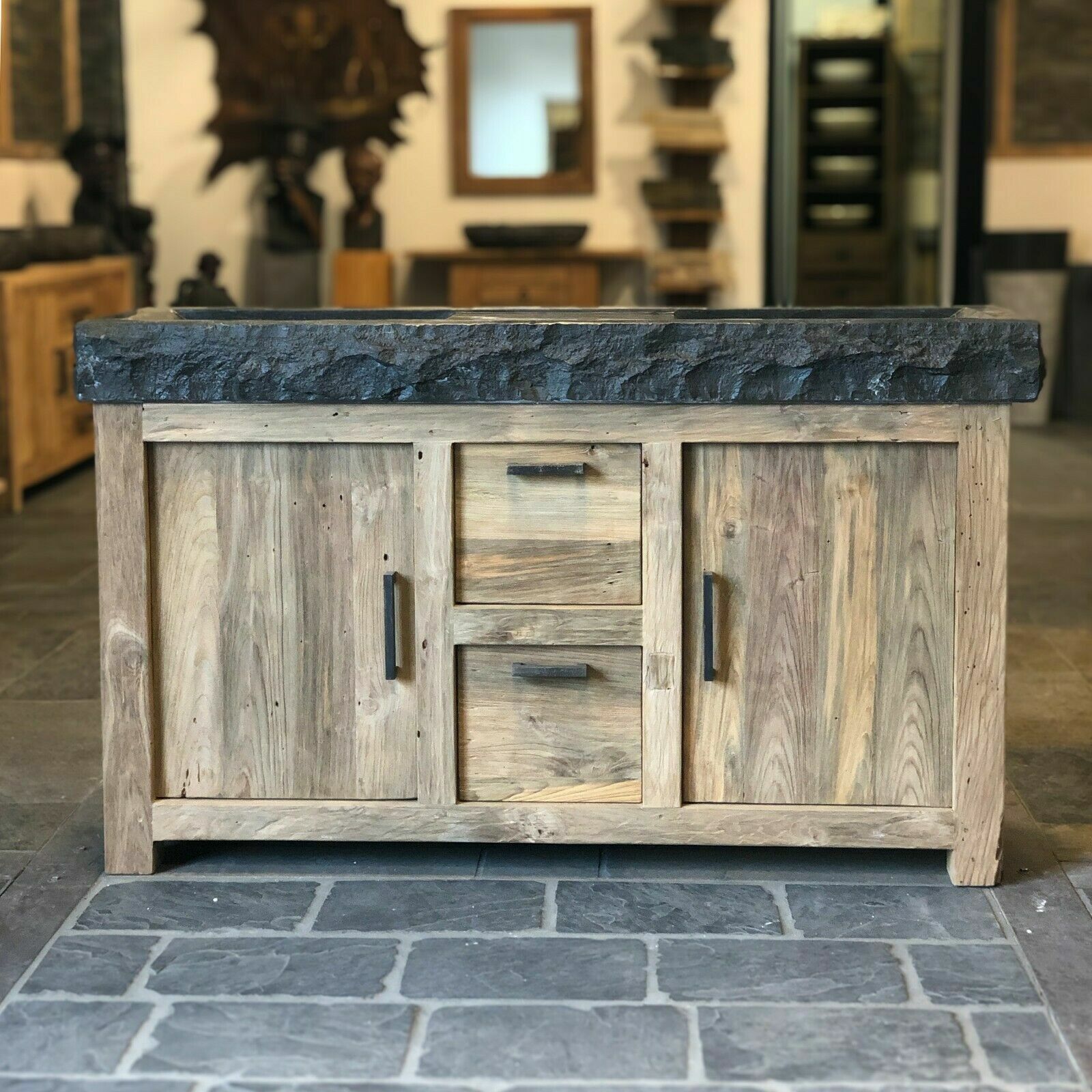 Rinca Waschbeckenunterschrank Kommode Teak Altholz Mit Schieferplatte 216x55x80 Wohnwelten Shop De