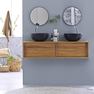 Waschtische Die angebotenen Waschtische wurden alle aus ausgewähltem legalem Massivholz hergestellt Das Holz stammt von einem Teakbaum Teakholz gilt als optimales Holz für Nassbereiche, da das Holz sehr robust und witterungsbeständig ist Durch die Eigenproduktion der Waschtische in einer kleinen Manufaktur können wir eine hohe Qualität und Verarbeitung gewährleisten. Waschbeckenunterschrank bad unterschrank waschtisch teakholz teak massiv neu lieferung in 4 wochen Source imageseusslimagesamazoncom Bei aufsatzbecken oder waschschalen, die auf den unterschrank gestellt werden, sieht es natürlich anders aus. Badezimmermobel Weiss Hochglanz Waschbeckenunterschrank 50 Cm Breit Bauhaus Badschranke 60 Cm Breit Badschrank Weiss B Hochschrank Spiegelschrank Schrank Pin Auf Mobel Haus Waschtisch Waschbeckenunterschrank Aus Teak 60 Cm Breit Ideal Fur Kleine Bader In Teak Vanity Cabinet Tikamoon.