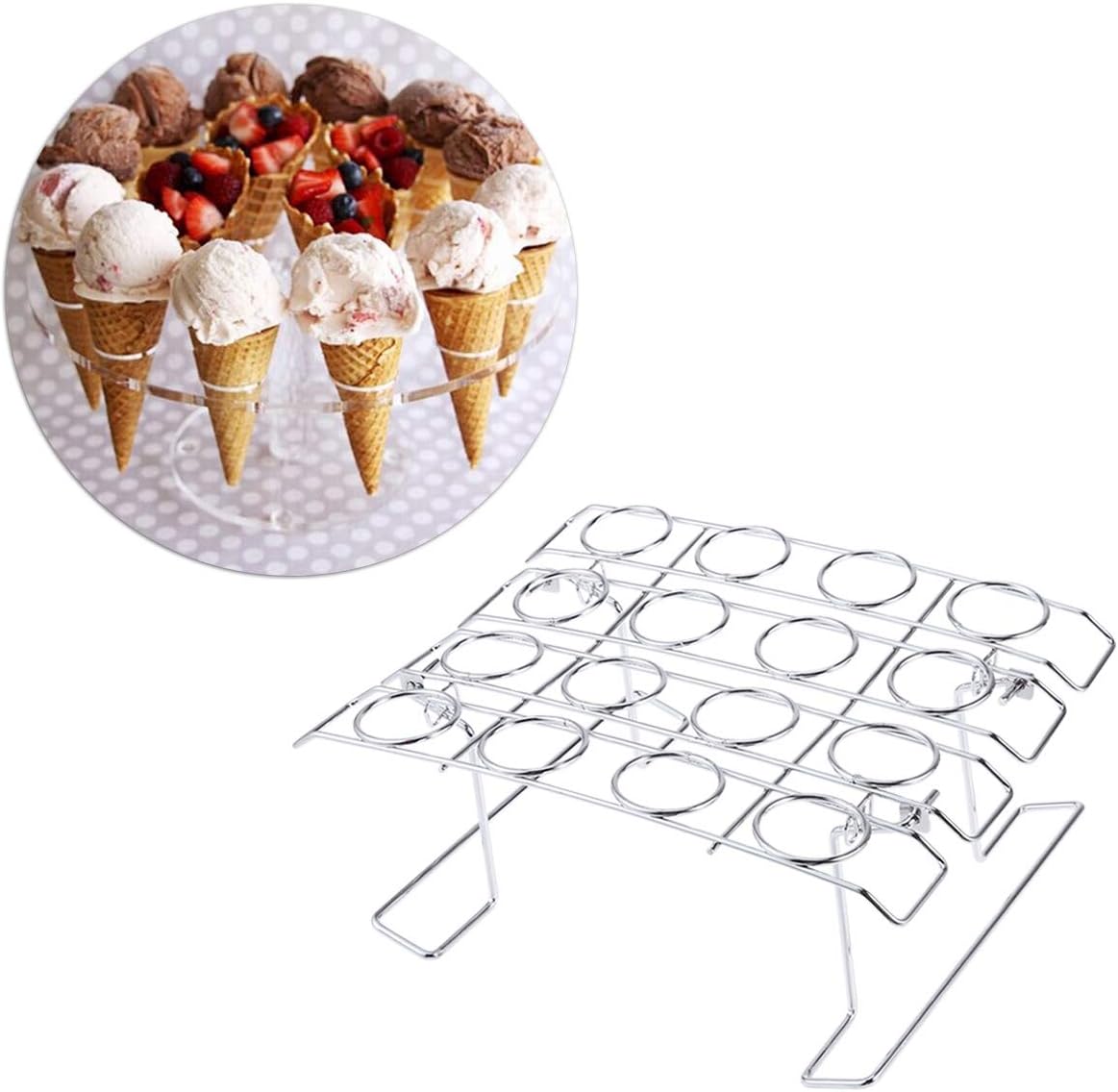 Amazon De Bestonzon Edelstahl Eistute Halter Faltbare Dessert Stander Cupcakes Kegel Backen Rack Fur Home Cafe Dessert Shop 16 Kapazitat