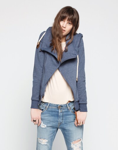 Naketano Women Family Biz Viii Zip Hoodie Indigo Blue Melange Soft Draped Collar Asymmetric Zipper Lined