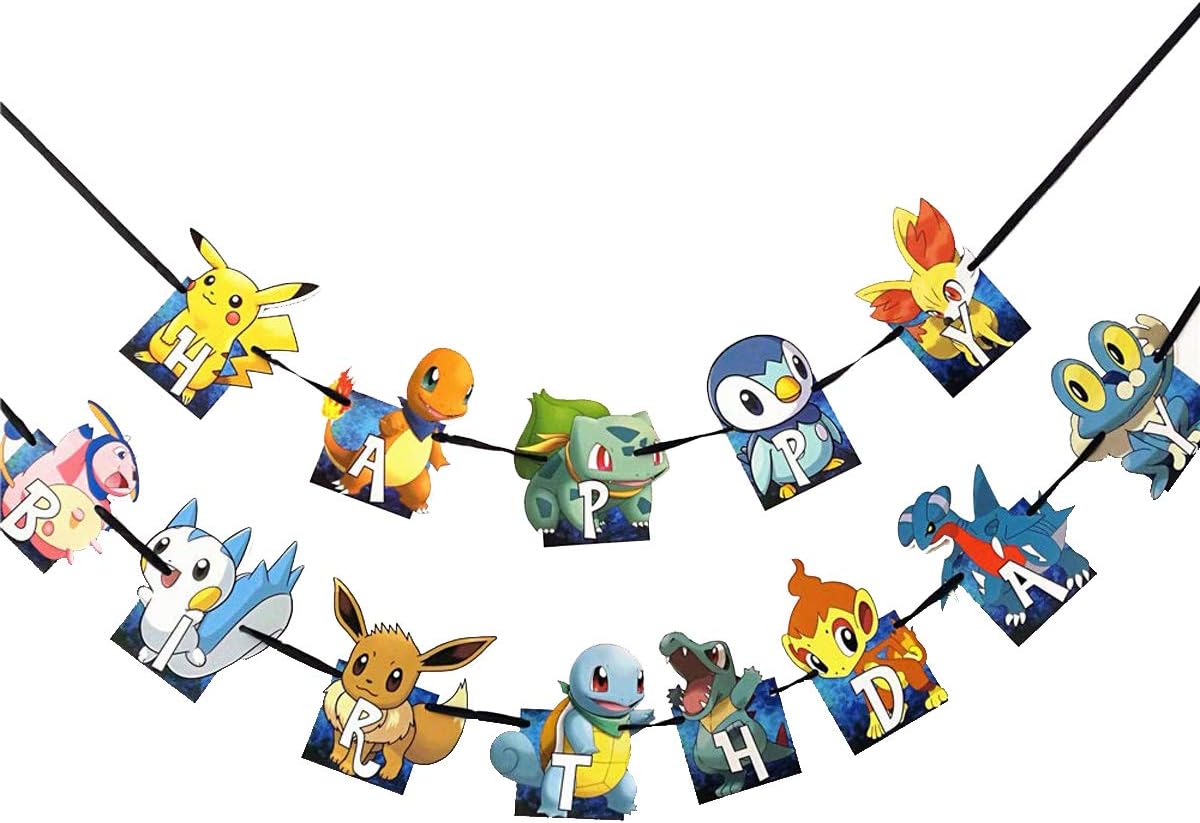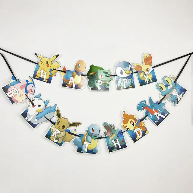 Cartoon Pokemon Banner Bunting Pennant Happy Birthday Party Decoration Kids Paper Garland Set Baby Shower Supplies Supplies Party Party Supplies Set Aliexpress