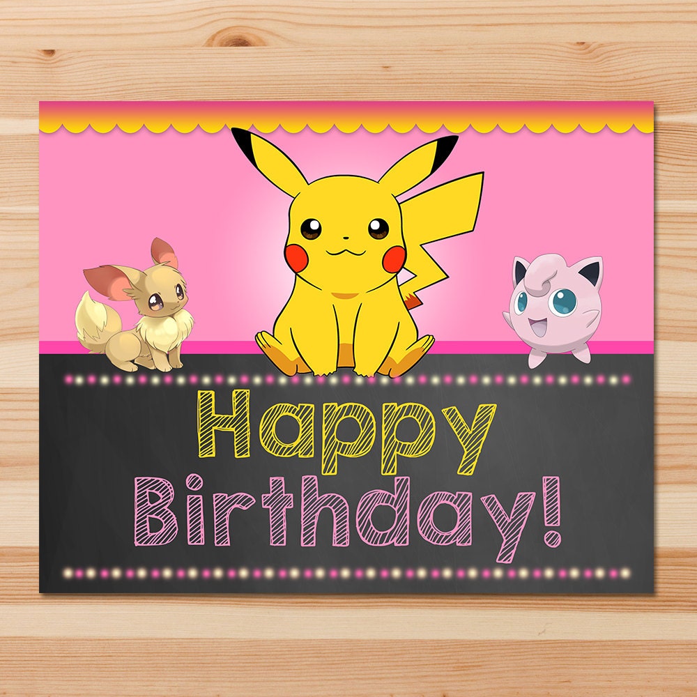 Pokemon Happy Birthday Sign Pink Girl Pokemon Pikachu Sign Etsy