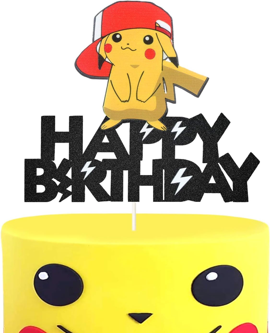 Amazon Com Pikachu Happy Birthday Cake Topper Cute Pokemon Inspired Cake Decor Trainers Themed Party Decoration Glitter Kid Birthday Party Supplies Home Kitchen