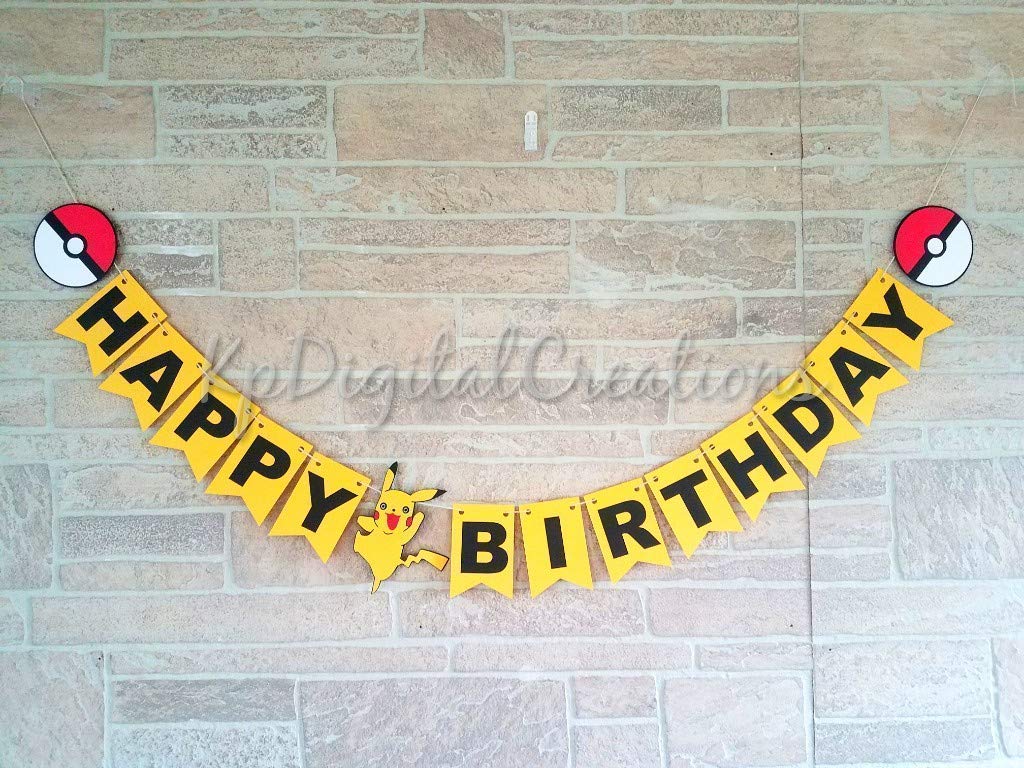 Amazon Com Pokemon Happy Birthday Wall Banner Decoration With Pikachu Handmade