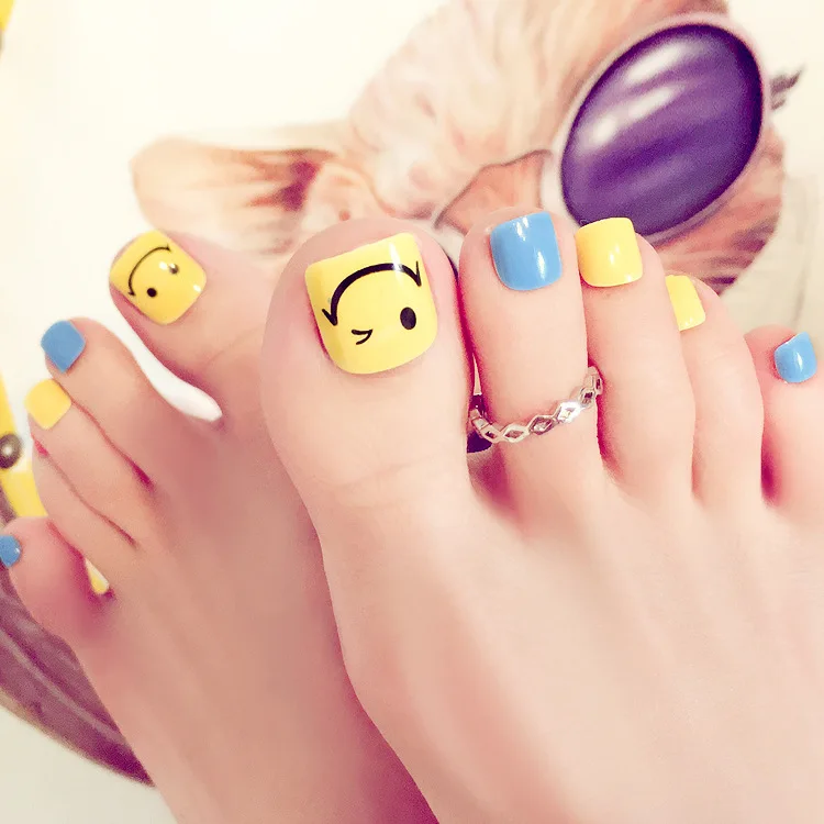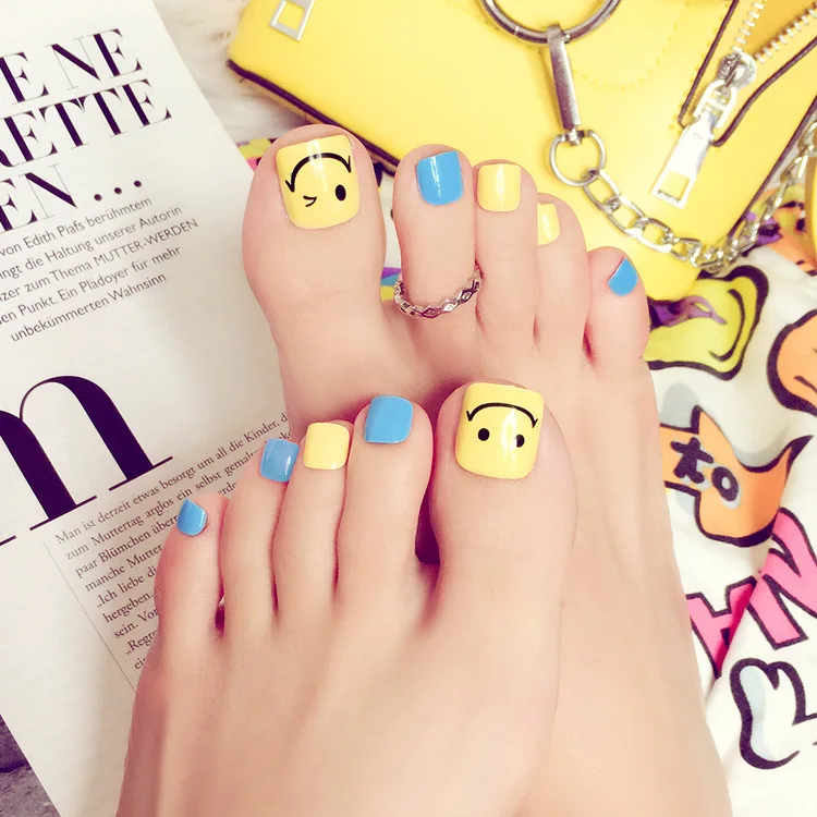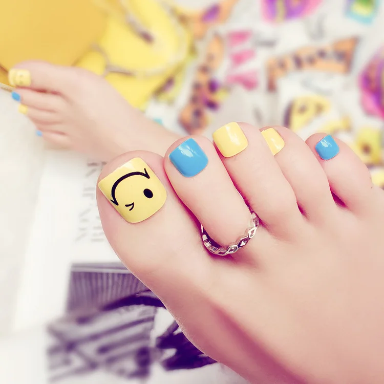 Mode Schonen Lachelnde Gesicht Gefalschte Nagel Patches Sommer Einfarbig Zehennagel 24 Teile Los Blau Und Gelb Fuss Nagel Madchen Zehennagel Fake Nails Foot Nailblue Toenail Aliexpress