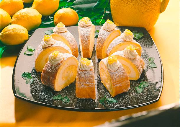 Spritzige Zitronen Biskuit Sahne Rolle 3 9 5