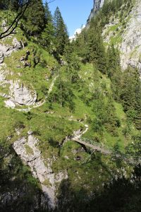 Soon I do reach a point from where I have a great view back into the valley and of the Kramer sitting across the valley I did cross this mountain last year You can read the post of this tour here After about an hour I reach the cabin that marks the entrance to the Höllentalklamm. Through Höllental valley (Höllentalklamm gorge) to Zugspitze Via Ferrata Zugspitz Region Back This tour takes you across a glacier and on a fixed rope route Alpine experience, glacier and equipment for fixed rope routes, helmet and security of step as well as a good head for heights (considering the very high and exposed fixed rope. The hike through the Höllentalklamm with its tunnels, bridges and planks over the wild and thunderous stream with all its whirlpools and waterfalls is an unforgettable adventure that is also suitable for practiced families For a more detailed description of the tour, please refer to "PDF Print" above.