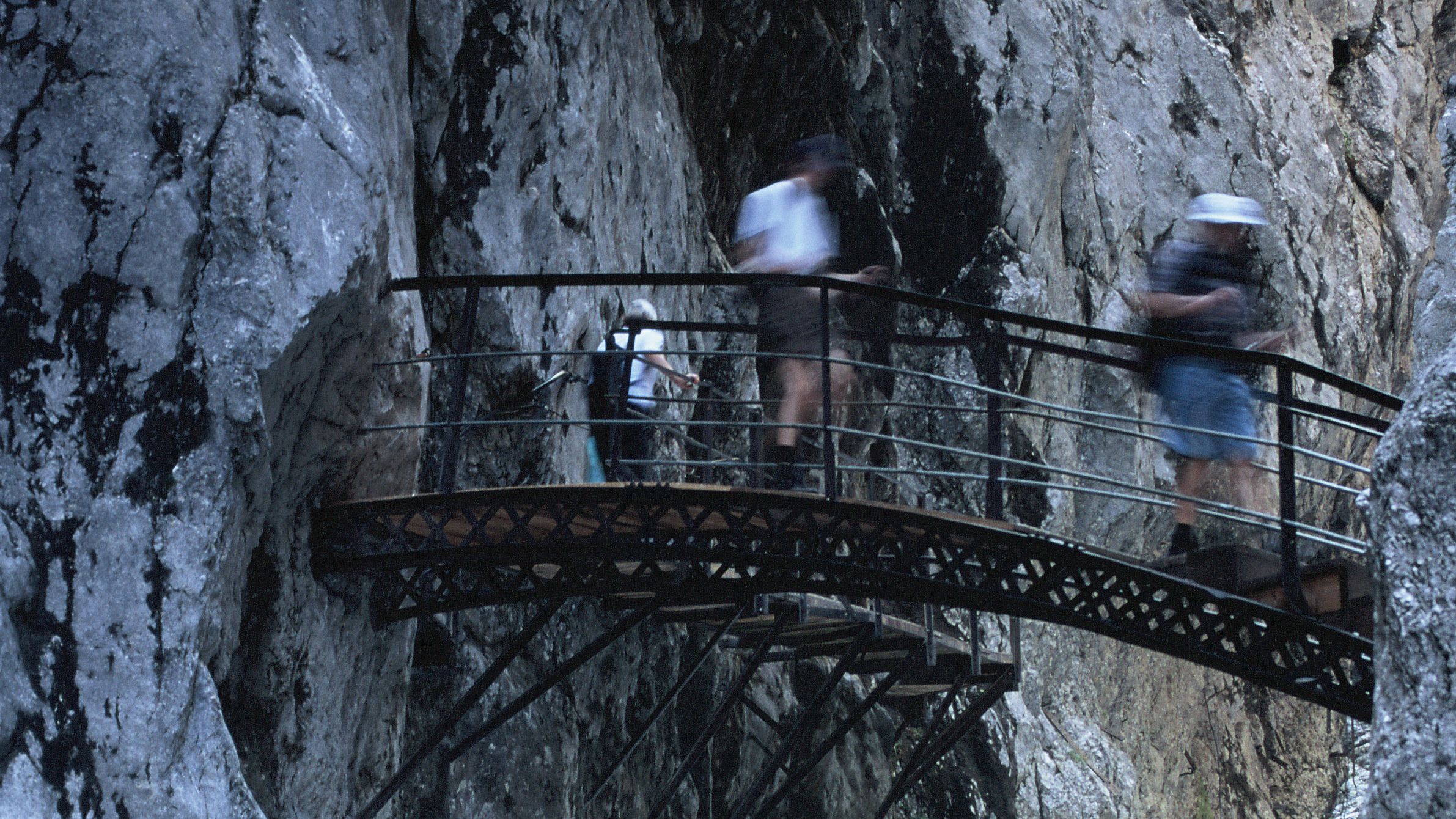 Through Höllental valley (Höllentalklamm gorge) to Zugspitze Via Ferrata Zugspitz Region Back This tour takes you across a glacier and on a fixed rope route Alpine experience, glacier and equipment for fixed rope routes, helmet and security of step as well as a good head for heights (considering the very high and exposed fixed rope. The "Wetzsteinbrüche" or "Whetstone Rocks" can also be reached via the gorge The demanding tour Höllentalklamm It sounds terrifying, but the Höllental gorge or "Hell's gorge" situated near Grainau is one thing above all others a natural wonder. Öffnungszeiten Die Höllentalklamm ist nur in der schneefreien Jahreszeit zugänglich Je nach Witterung und Schneelage wird die Klamm im Laufe des Monats Mai eröffnet und Ende Oktober wieder geschlossenFür aktuelle Informationen beachten Sie bitte die Angaben auf der Webseite des Deutschen Alpenvereins oder der Webseite der TouristInfo Grainau.