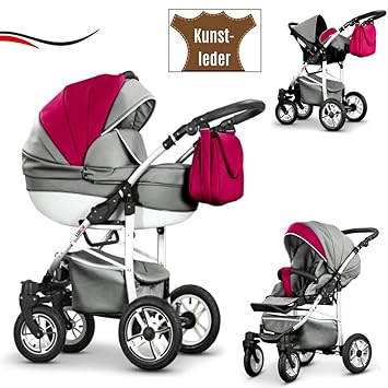 16 Teiliges Qualitats Reisesystem 3 In 1 Cosmo Eco Kunstleder Kinderwagen Buggy Autokindersitz Schwenkrader Mega Ausstattung In Farbe Ce 04 Mittelgrau Cerise Kunstleder Weiss Amazon De Baby
