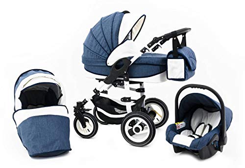 16 Teiliges Qualitats Reisesystem 3 In 1 Cosmo Eco Kunstleder Kinderwagen Buggy Autokindersitz Schwenkrader Mega Ausstattung In Farbe Ce 12 Weiss Navy Kinderwageneldorado