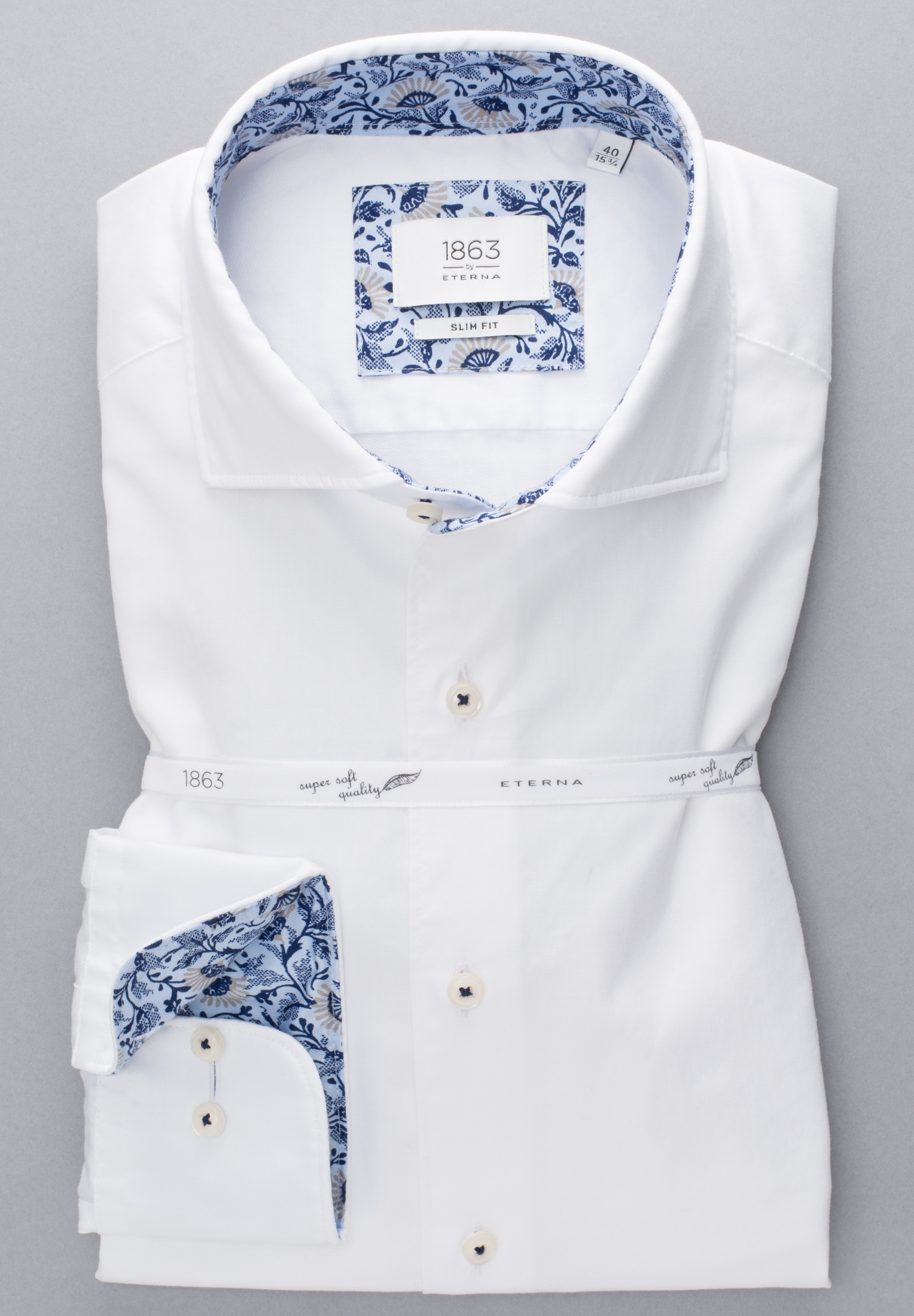 Eterna Super Slim Hemd Langarm New Kent Kragen Blickdicht Hellgrau