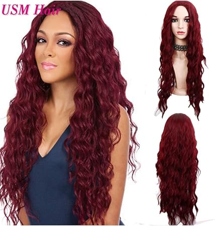 Yhegv Perucken Wellig Dauerwelle Langes Haar Lockig Naturliche Flauschige Sexy Synthetische Locken Haar Damen Cosplay Halloween Party 26 Zoll Farbe Weinrot Amazon De Kuche Haushalt
