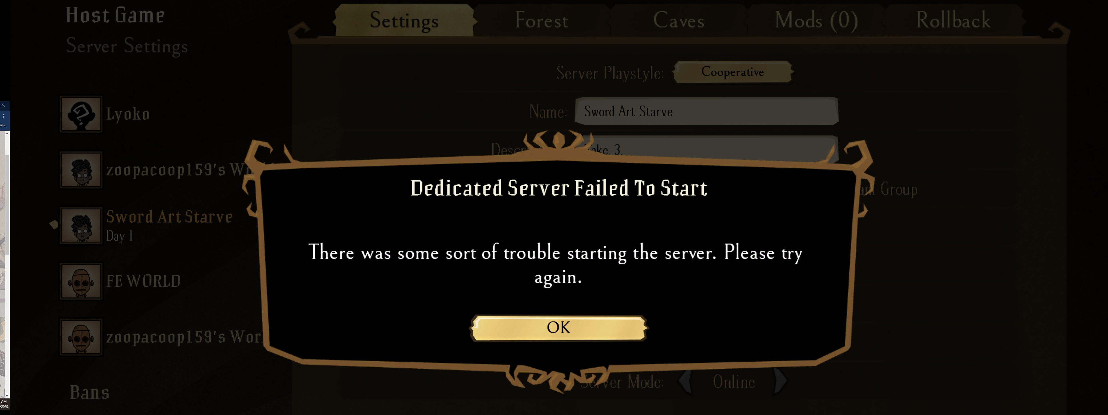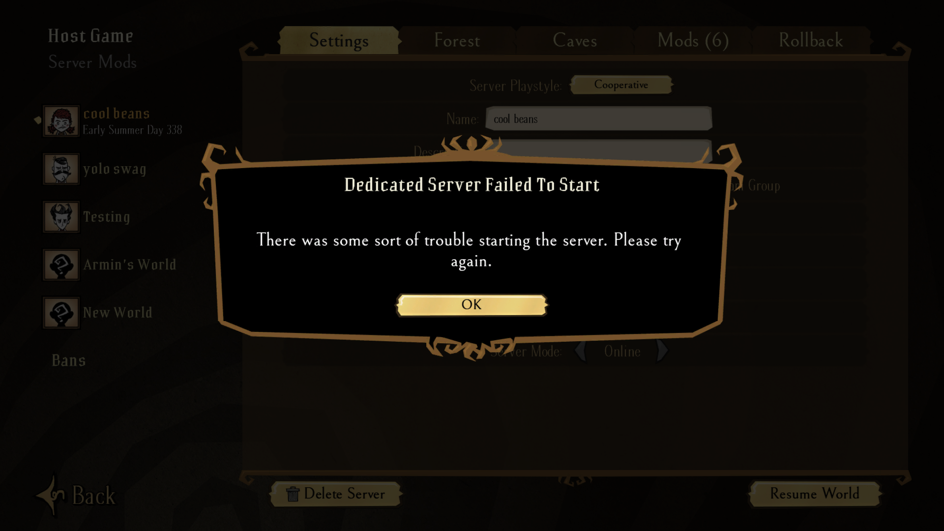 Dedicated Server Failed To Start Now I Can T Even Play My Own World Don T Starve Together Dedicated Server Discussion Klei Entertainment Forums