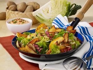 Kartoffelpfanne das verspricht ganz viel Geschmack bei wenig Aufwand In Kombination mit Gemüse, Fleisch oder Eiern entstehen so tolle Alltagsgerichte. Kartoffelpfanne mit Chinakohl Ein leicht adaptiertes Walleczek Rezept für 2 Personen 23 mittelgroße Kartoffeln, Salz, Pfeffer, 1 Zwiebel, 1 Knoblauchzehe, 1 Chinakohl, Butter, Olivenöl, 1 TL Paprikapulver, 1 TL Kümmel, 1 Dose weiße Bohnen (285 g Abtropfgewicht). VEGETARISCH Spaghetti in mediterraner Gemüsesoße (vegan) (Wz,Sel,L) 8,90 € Käsespätzle mit Röstzwiebeln und Salat (Wz,Ei,M,Sen) 8,50 € bunte Kartoffelpfanne mit Salat (Sel,Sen) 8,90 € hausgemachte Semmelklöße mit Pilzrahmsoße (Wz,M,Ei,Sel,Sen) 8,90 €.