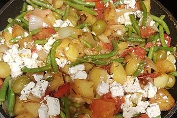 Die besten Kartoffelpfanne mit Eiern und Gemüse Rezepte Kartoffelpfanne mit Eiern und Gemüse Rezepte und viele weitere beliebte Kochrezepte finden Sie bei. Grüne Kartoffelpfanne mit Feta und Sesam Vegetarische Bratkartoffeln nach griechischer Art mit würzigem Schafskäse. ESSEN VEGETARISCH Sonntag, 16 Mai 10 Griechische Kartoffelpfanne Kartoffeln schälen, in 1 cm große Würfel schneiden und in etwas Salzwasser kochen bis sie gar sind Abtropfen lassen und in einer großen Pfanne mit etwas Öl anbraten Dazu eine klein gehackte Zwiebel geben und braten lassen.