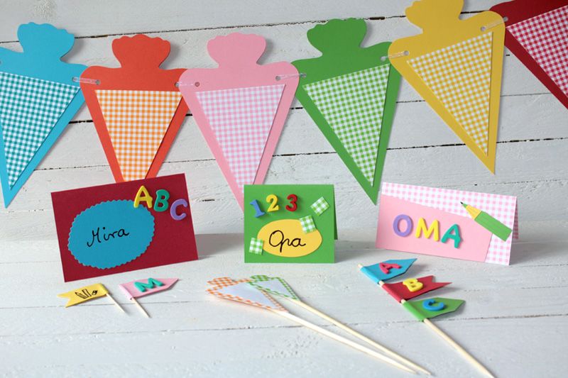 Deko Zur Einschulung Basteln Girlande Tafel Tischkarten