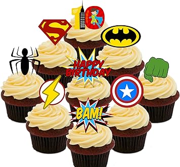 Essbare Cupcake Dekoration Zum 10 Geburtstag Motiv Superhelden Zum Aufstellen Kuchendekorationen Aus Esspapier 36 Stuck Amazon De Kuche Haushalt