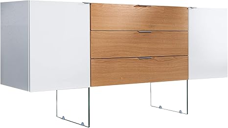 Dunord Design Sideboard Weiss Hochglanz 160cm Kommode Modern Eiche Glas Malmo Im Skandinavischen Design Anrichte Schrank Amazon De Kuche Haushalt