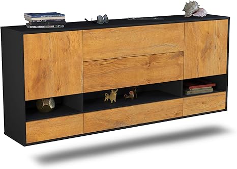 Dekati Sideboard Peoria Hangend 136x77x35cm Korpus Anthrazit Matt Front Holz Design Eiche Push To Open Leichtlaufschienen Amazon De Kuche Haushalt