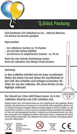 Diese lustigen luftballons sind die perfekte Dekoration, um Ihre Feier von zu zu beleuchten und garantieren Ihrer Veranstaltung Magie und Originalität Hinweis wenn sie denken, entfernen sie das Vlies, können Sie die LED herausnehmen, dass die led nicht hell genug ist, die LED wird heller. Led Luftballons Anleitung Der Testsieger der Redaktion Egal wieviel du also zum Thema Led Luftballons Anleitung recherchieren wolltest, findest du auf unserer Seite als auch die genauesten Led Luftballons Anleitung Produkttests. • Verwenden Sie keine Lösungs oder Scheuermittel.