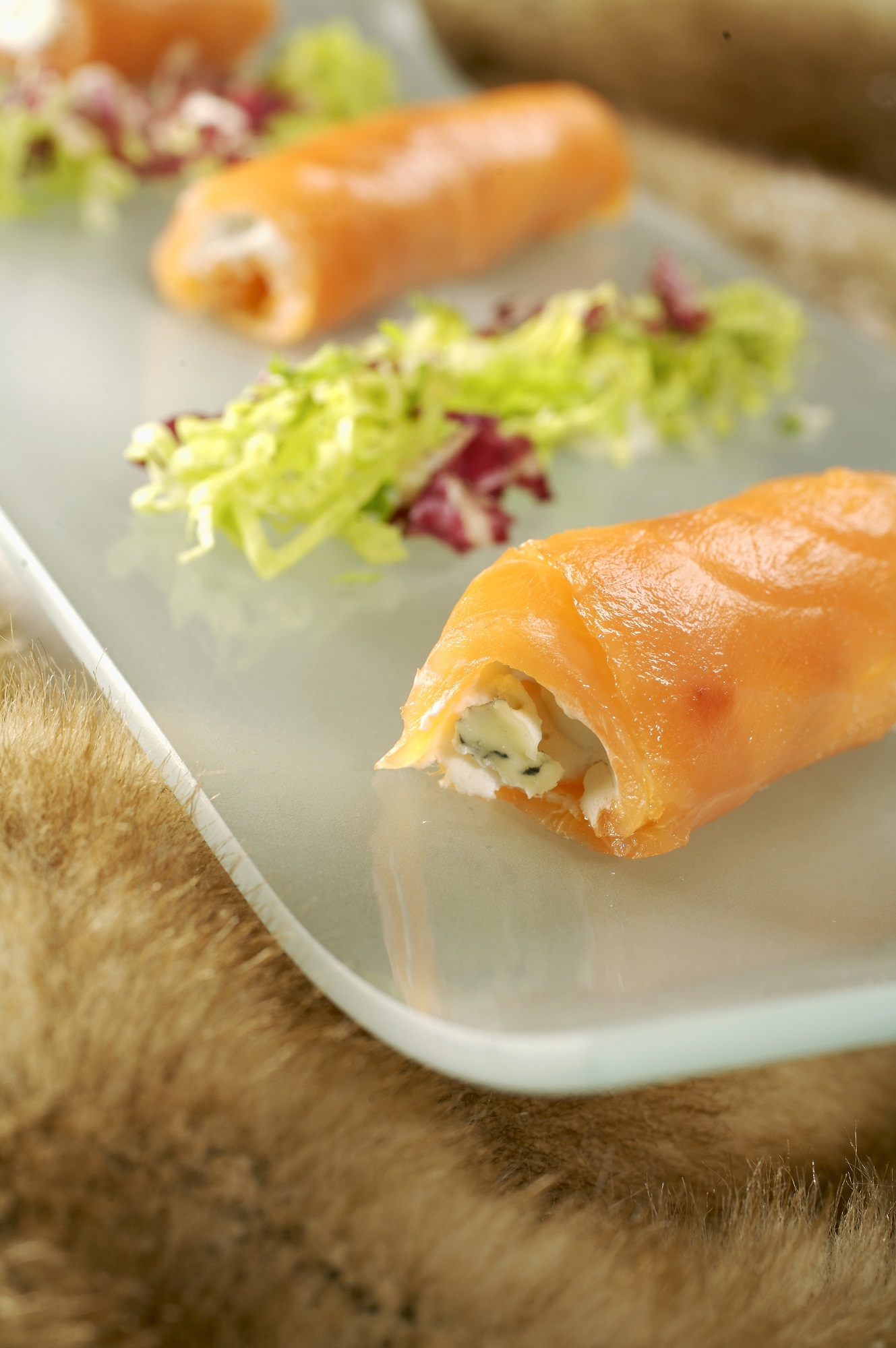Gemischter Salat Lachs Auf Russische Art Und Fourme D Ambert Fromage Aop Fourme D Ambert
