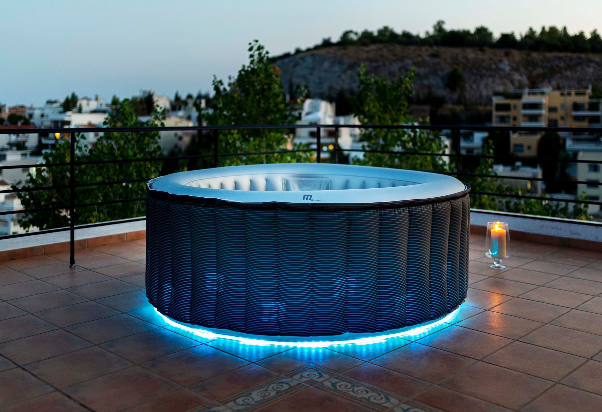 Aufblasbarer Outdoor Whirlpool Auf Terrasse Balkon Mit Verkleidung Isolierung
