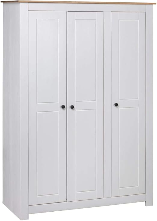 Unfadememory Kleiderschrank 3 Turig Garderobenschrank Kiefer Massivholz Schlafzimmer Garderobe Kommode Mit Kleiderstange Und 3 Turen 118 X 50 X 171 5 Cm Weiss Amazon De Kuche Haushalt