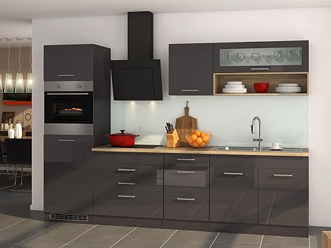 Kuchenzeile Kochnische Kuchen Set Kuche Einbaukuche Kuchenblock Mailand Viii Grau Hochglanz Amazon De Kuche Haushalt