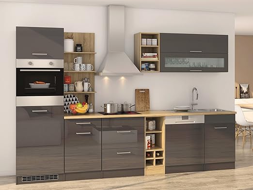Kuchenzeile Einbaukuche Kuche Kuchenblock Kuchen Set Kochnische Mailand Iii Grau Hochglanz Amazon De Kuche Haushalt