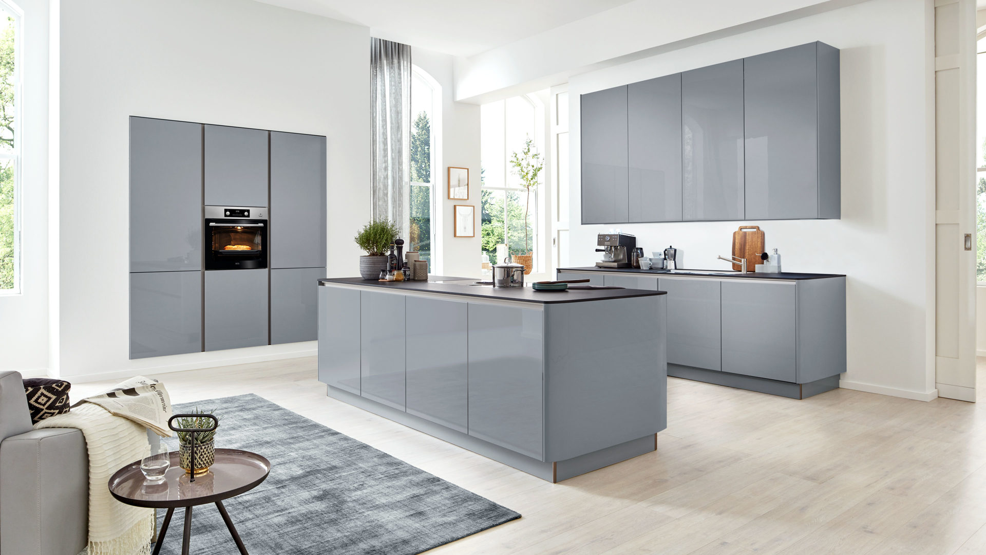 Hochwertige L Kuche Focus Von Nobilia Mit Front In Hochglanz Lack Mineralgrau Grau
