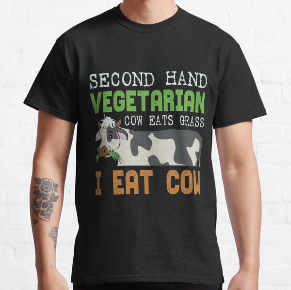 T Shirt Second Hand Vegetarier Kuh Isst Gras Ich Esse Kuh Spass Lustiger Spruch Ebay