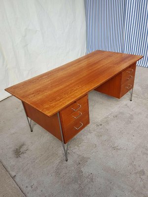 Danischer Mid Century Teak Chrom Schreibtisch Mit Doppelsockel Von Danflex Bei Pamono Kaufen