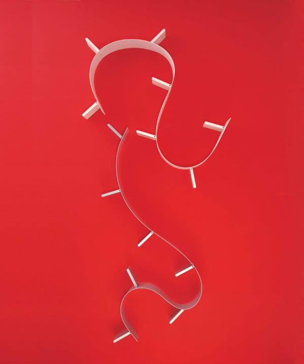 Bookworm combines flexibility and superior durability allowing approximately lbs between each support It is advisable to wallmount the shelf in a curved shape to keep the materials in tension and to increase resistance once loaded Dimensions Large Bookshelf (17 bookends) Width 322 7/8″ Height 7 1/2″ Depth 7 7/8″. Bookworm combines flexibility and superior durability allowing approximately lbs between each support It is advisable to wallmount the shelf in a curved shape to keep the materials in tension and to increase resistance once loaded Dimensions Short Bookshelf (7 bookends) Width 126″ Height 7 1/2″ Depth 7 7/8″. Bookworm combines flexibility and superior durability allowing for a load of around 221 lbs for each support It is advisable to wallmount the shelf in a curved shape to keep the materials in tension and to increase resistance once loaded Features Designed by Ron Arad, 15;.