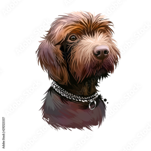 Pudelpointer Dog Portrait Isolated On White Digital Art Illustration Of Hand Drawn Dog For Web T Shirt Print And Puppy Food Cover Design Versatile Hunting Dog Breed From Germany Pet With Collar