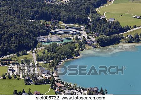 Austria Salzburg State Salzkammergut Fuschl Am See View To Seaside Resort And Red Bull Headquarter At Lake Fuschlsee Stock Image Sief Fotosearch