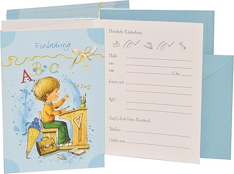 Alles Meine De Gmbh 10 Tlg Set Einladungskarten Umschlag Schulanfang Schuleinfuhrung Einladung Karte Jungen Schule Party Einladungen Kinder Amazon De Spielzeug