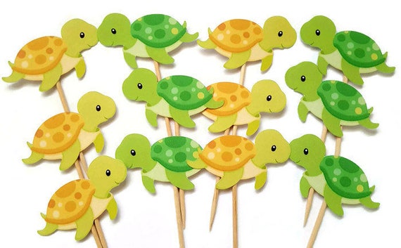 Schildkrote Kuchen Deckel Set Von 12 Essenspiekser Etsy