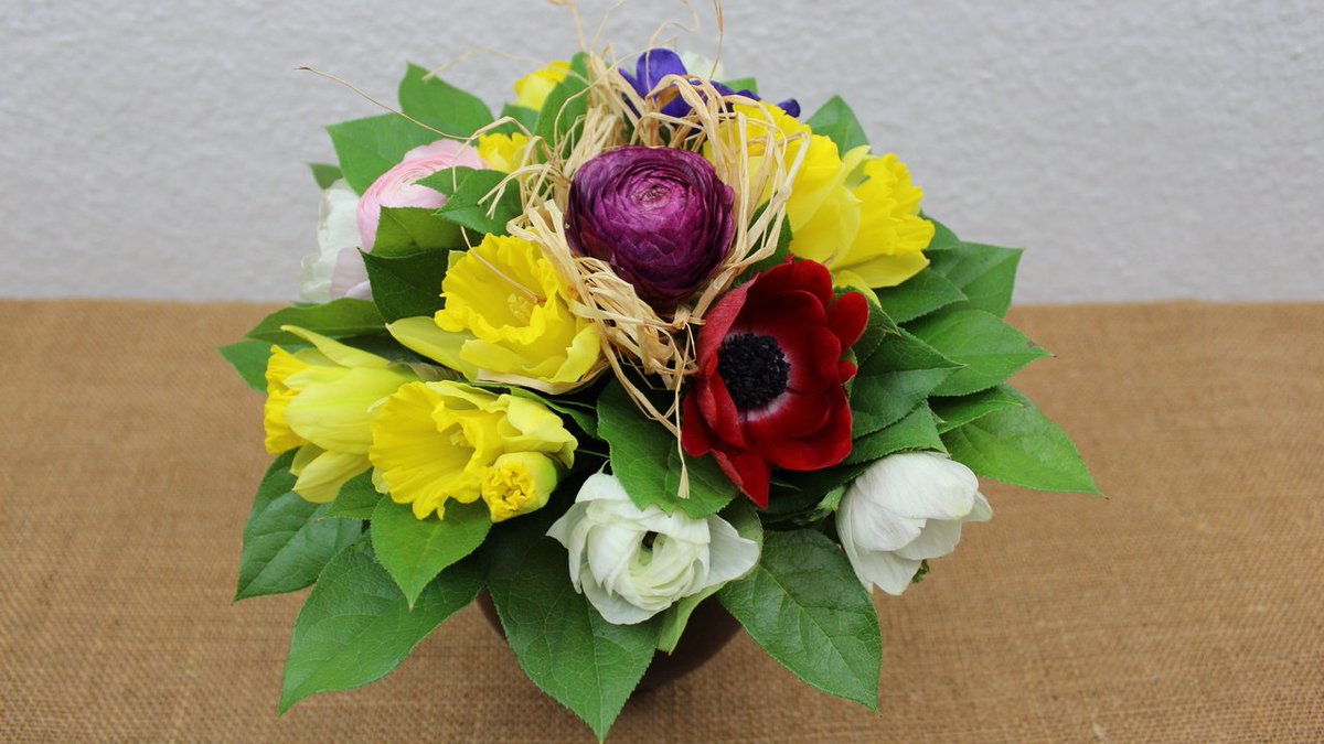 Flora Shop Osterdeko Blumenstrauss Mit Osterglocken Anemonen Und Ranunkeln Selber Binden Video Anleitung T Co 6pbwsqwinr T Co Dm6afawxj5
