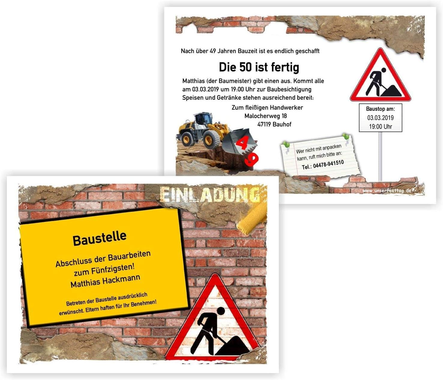 17 X 12 Cm Witzige Geburtstagseinladungen Maurer Zweiseitig Auch Fur Gesellenprufung Meisterprufung Feste Partys Und Feiern 30 Karten