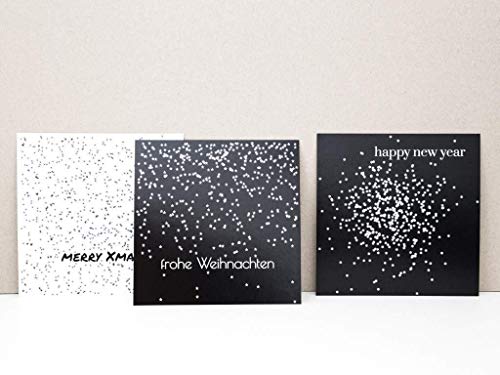 3 Weihnachtskarten Im Set Schwarz Weiss Typografie Postkarten Fur Neujahr Und Weihnachten Mit Schneeflocken Minimale Karten Frohes Neues Amazon De Handmade