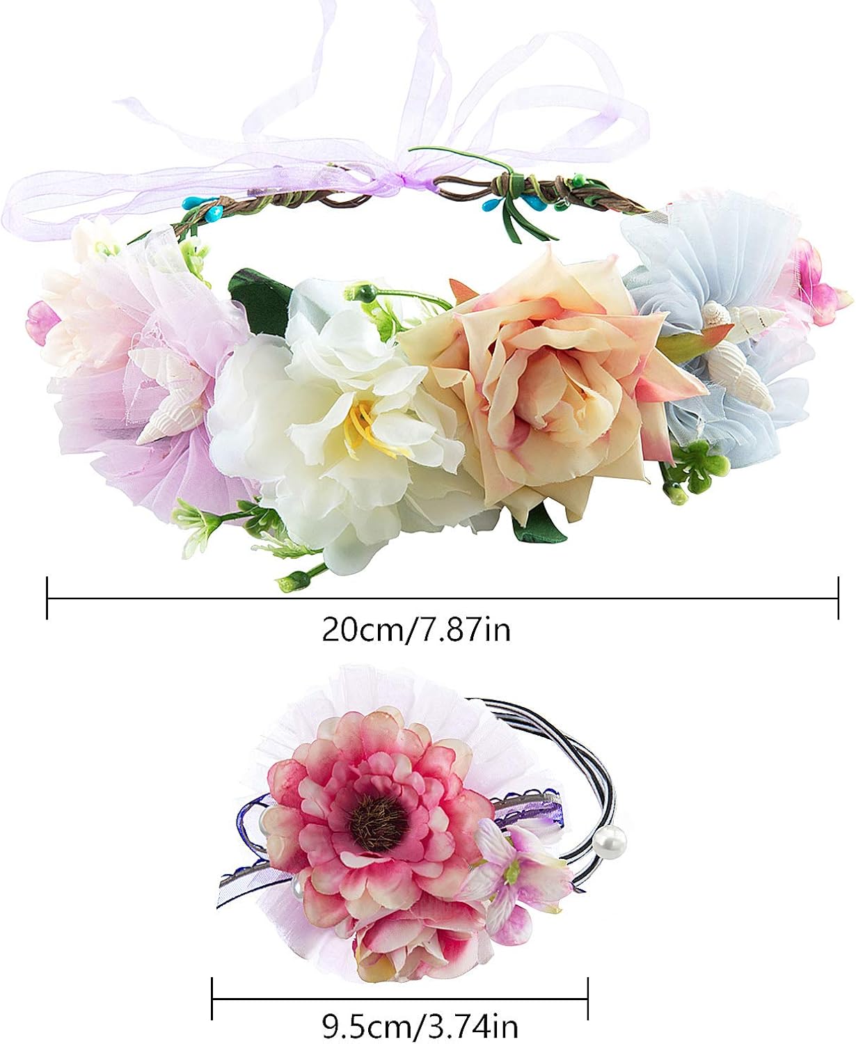 Joeyer Blumenkranz Haarband Blumenkranz Haare Blumen Stirnband Mit Verstellbar Blumenkranz Handgelenk Band Fur Frauen Madchen Festival Hochzeit Und Party Madchen Haarschmuck