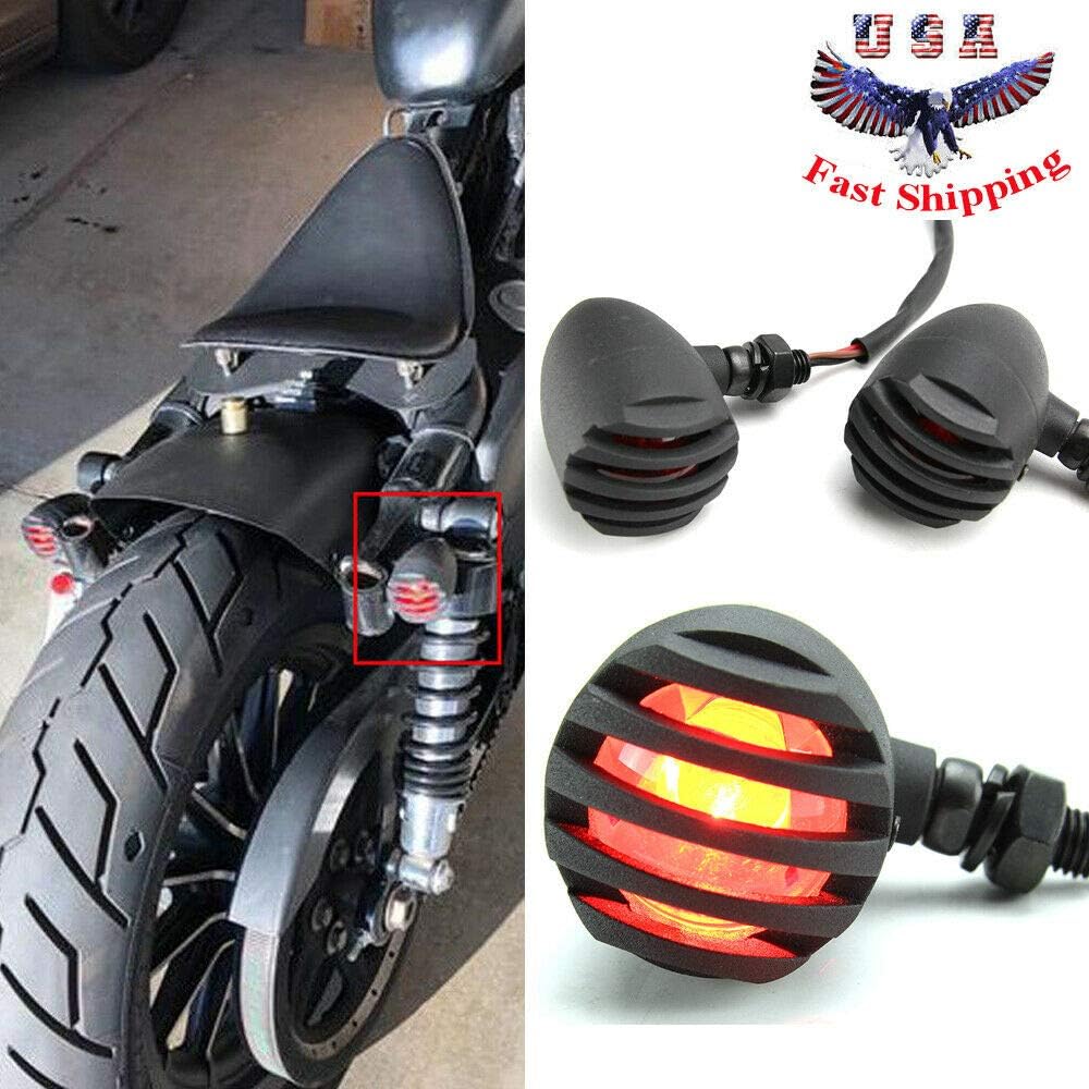 Black Universal Cafe Racer Bobber Motorcycle Turn Signals Indicator Lights Red Ebay