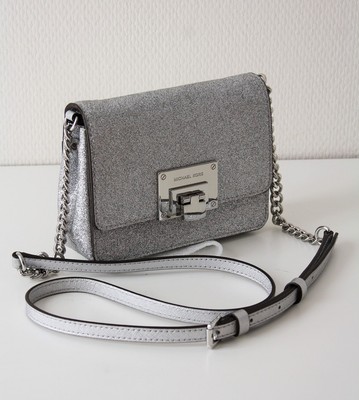 Michael Kors Tasche Umhangetasche Tina Sm Crossbody Leather Silver Mit Glitzer Ebay