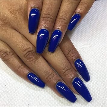 Bloomingboom 24pcs Lot Falsche Nagel Ballerina Falscher Nagel Lang Volle Deckung Bereits Gefarbt False Nail For Predesign Press On Coffin Halbtransparentes Konigsblau Amazon De Beauty