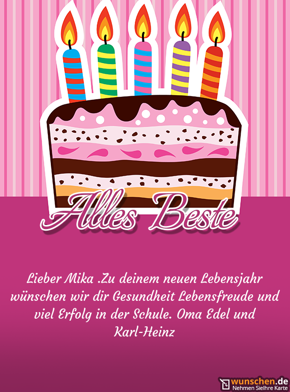 Lieber Mika Zu Deinem Neuen Lebensjahr Wunschen Wir Dir Gesundheit Lebensfreude Und Viel Erfolg I Geburtstag Karte
