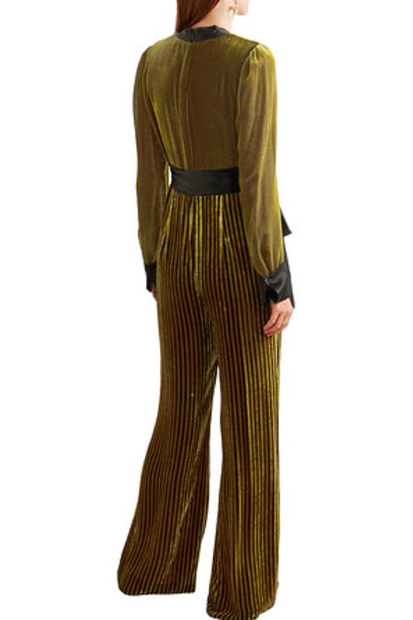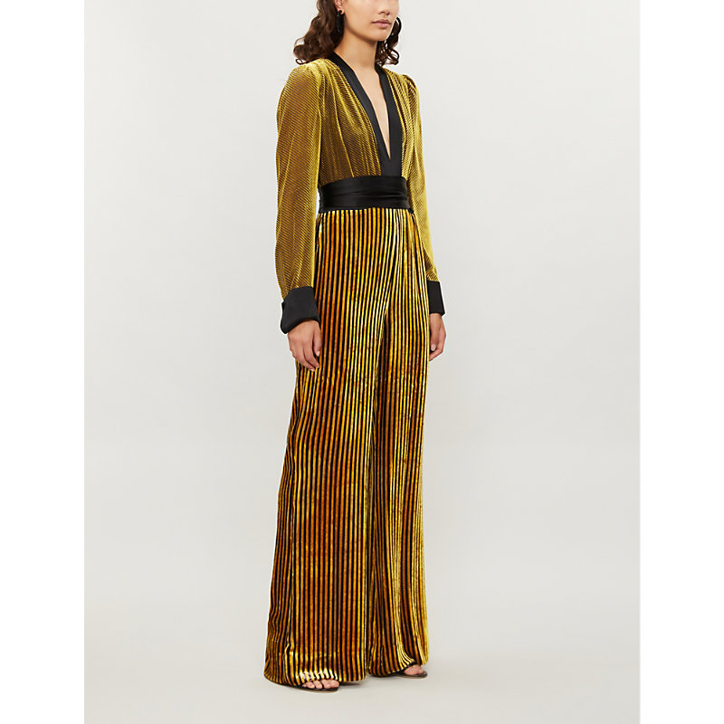 Satin Trimmed Striped Velvet Jumpsuit Diane Von Furstenberg Matchesfashion Us Gold Jumpsuit Jumpsuits For Women Fashion