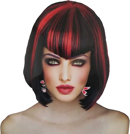 Lemon Tree Sl Damen Perucke Vampir Rot Schwarz Langbob Fur Halloween Karneval Perucke Cosplay Vampir Schwarz Rot Amazon De Kuche Haushalt