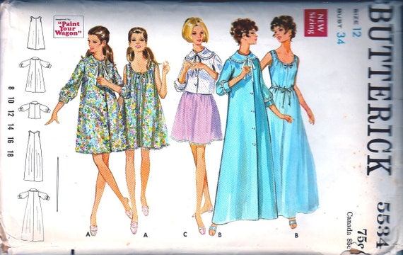1960er Jahre Nachthemd Robe Bett Jacke Schnittmuster Retro Mid Etsy