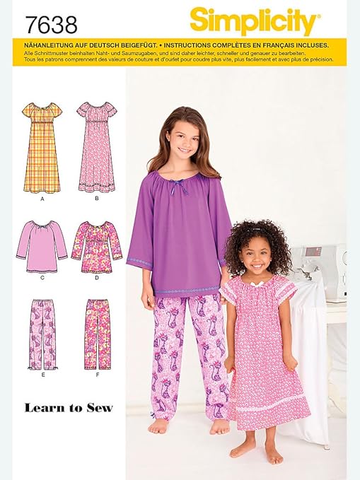 Simplicity Schnittmuster 7638 Hh Madchenschlafanzug Oder Nachthemd Amazon De Kuche Haushalt